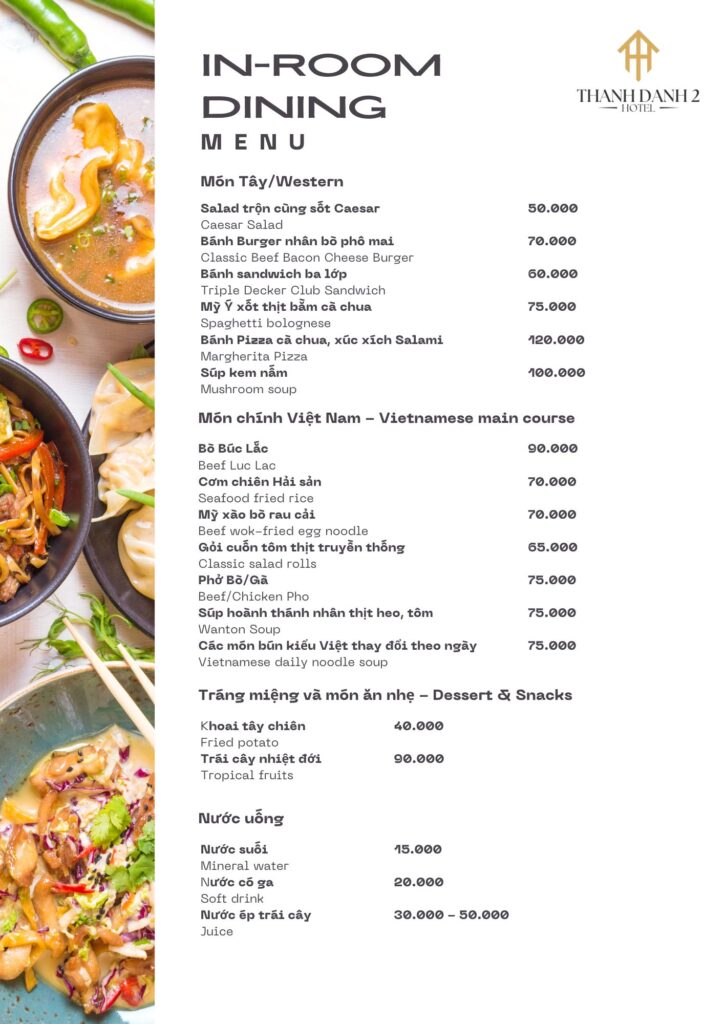 Thực đơn gọi món tại phòng tại Khách sạn Thanh Danh 2